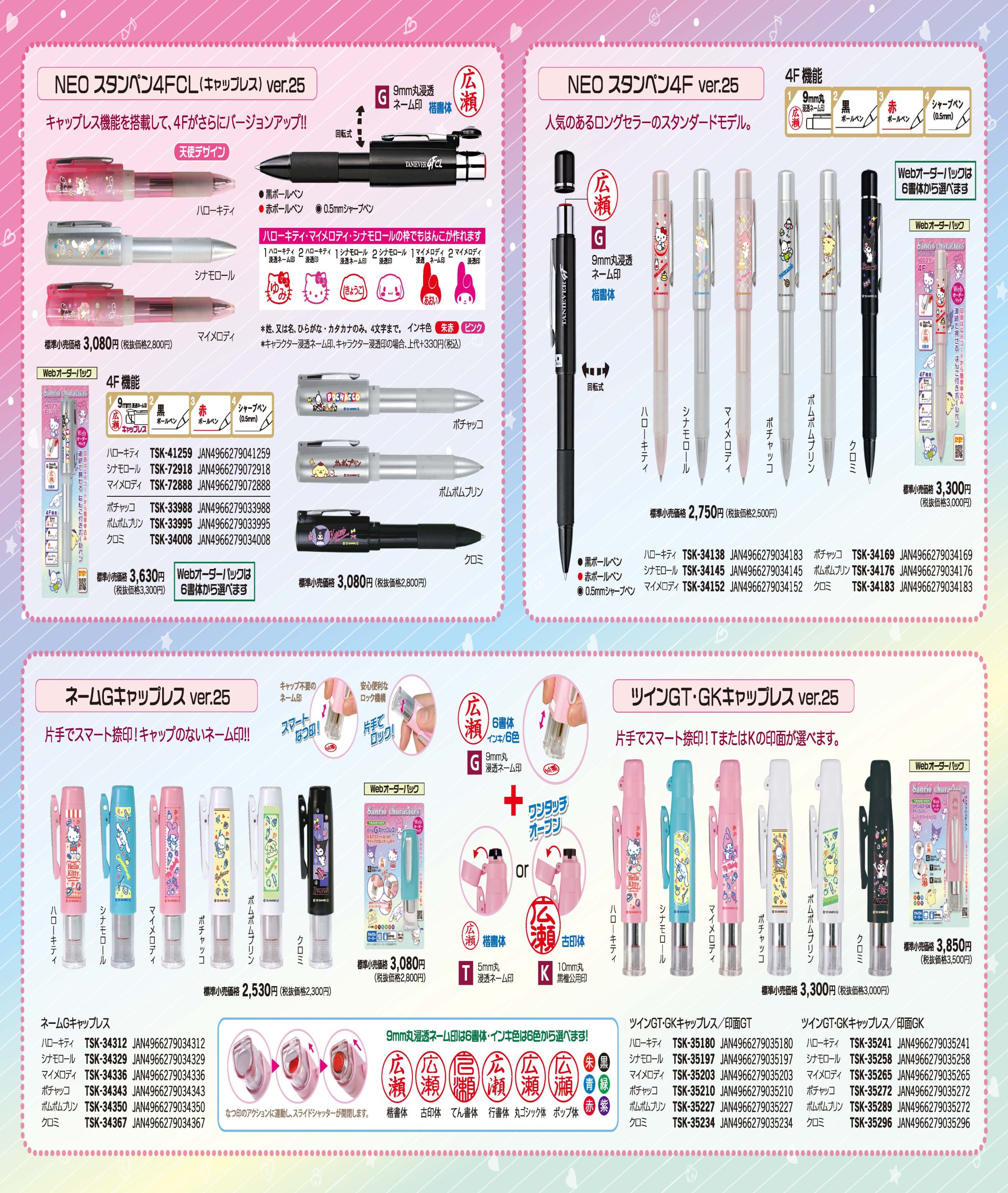 サンリオキャラクターズの人気キャラクターがデザインされた、便利なキャップレス印鑑「ツインGT」。